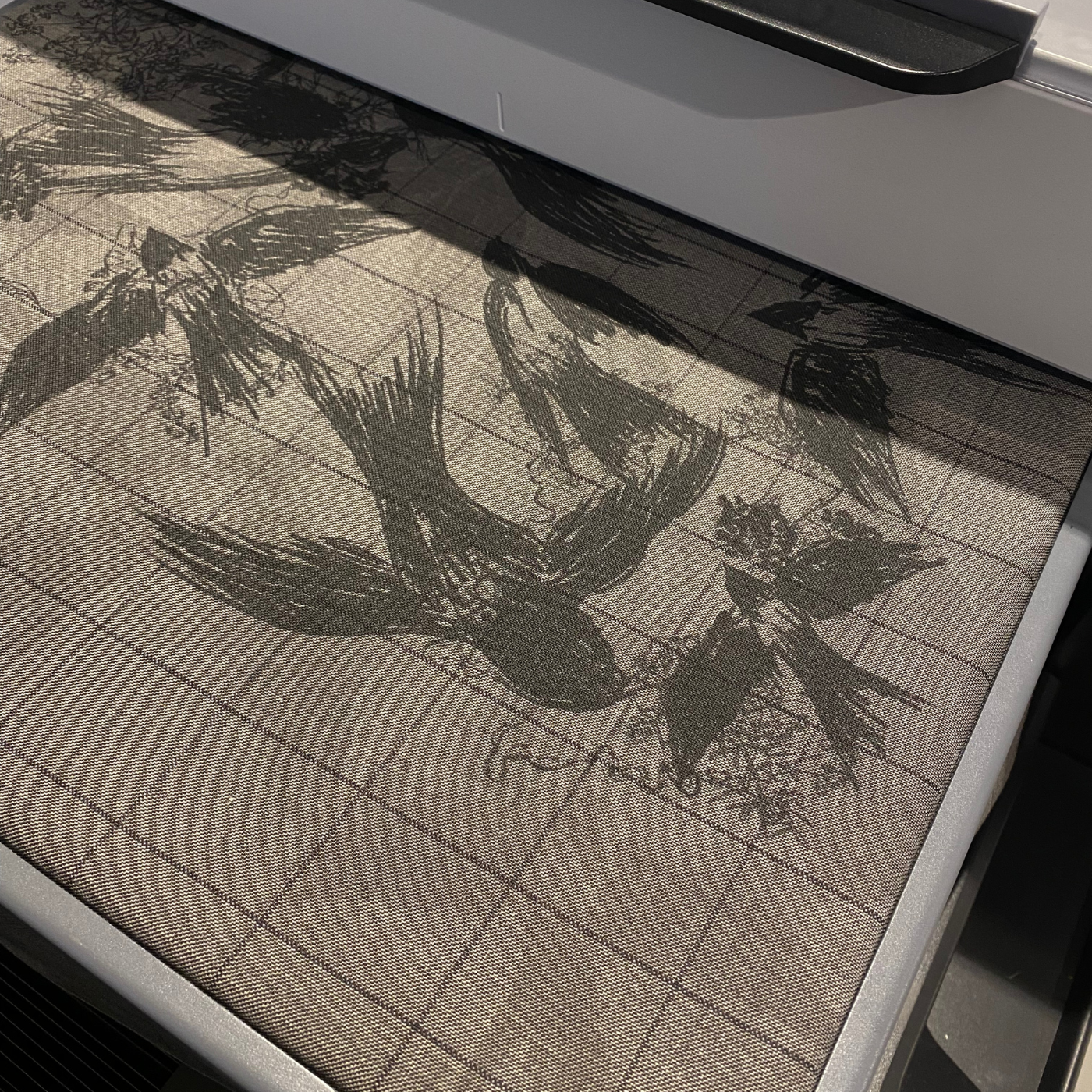 With the goal of giving textiles new life and extending their use before recycling, there are several advantages for companies using digital printing. For this innovative project, I designed various prints that are applied to out-of-stock textiles provided by Selfmade and X-Company. The printing process varies depending on whether the fiber type is primarily synthetic or natural. For synthetic textiles, eco passport-certified dye is printed on paper, and with heat and pressure, the dye is then sublimated onto the textile. For textiles with a high content of natural fibers, it is possible to print directly onto the fabric using eco passport-certified pigment dye. The printed textile is then heat-pressed, resulting in a brand-new design 🖨