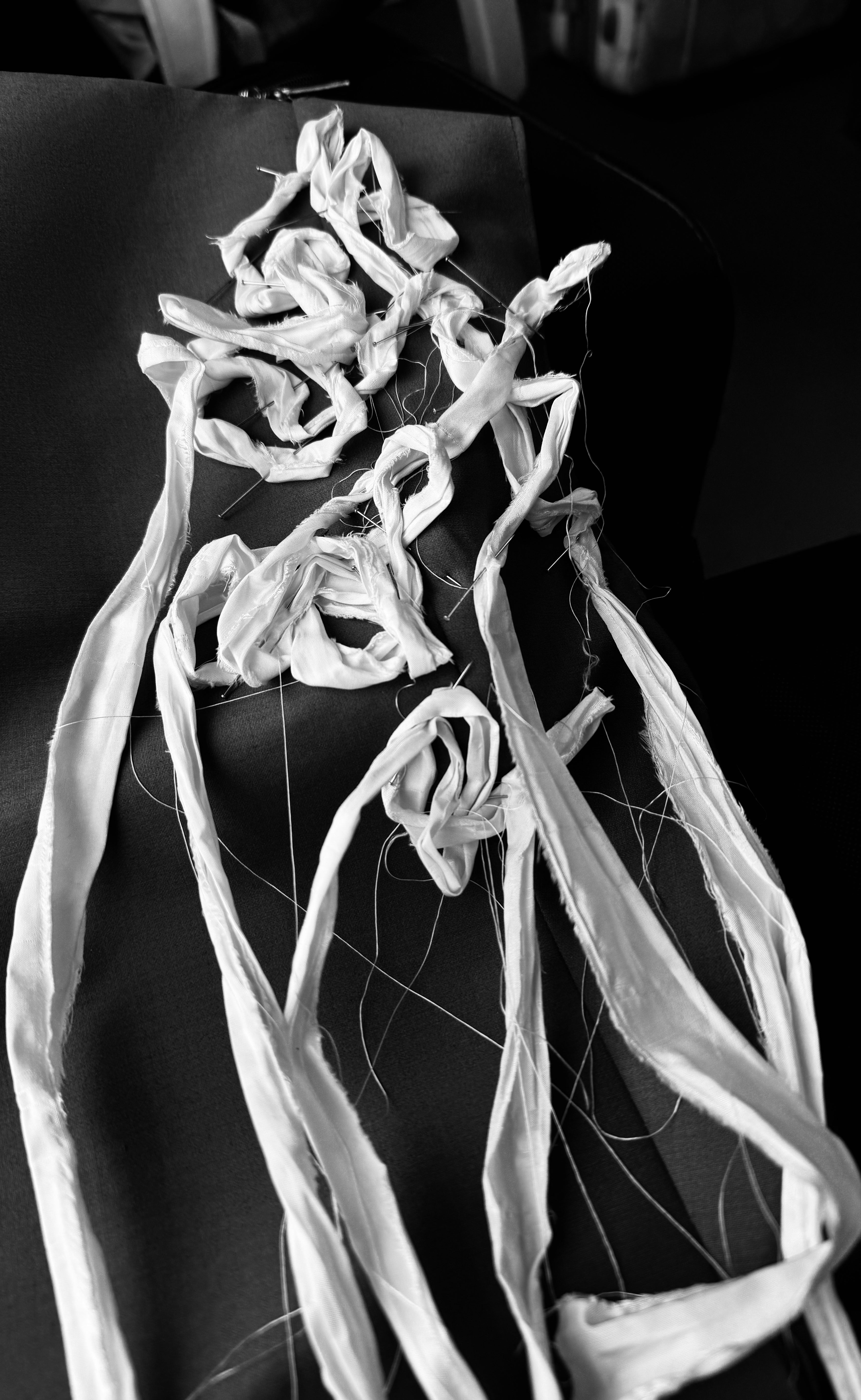 To create unique solutions through deadstock, I particularly use fabric manipulation methods, such as embroidery, stitching, or similar techniques, to achieve a result that matches the experimental and innovative aesthetic.